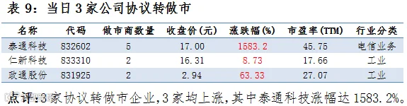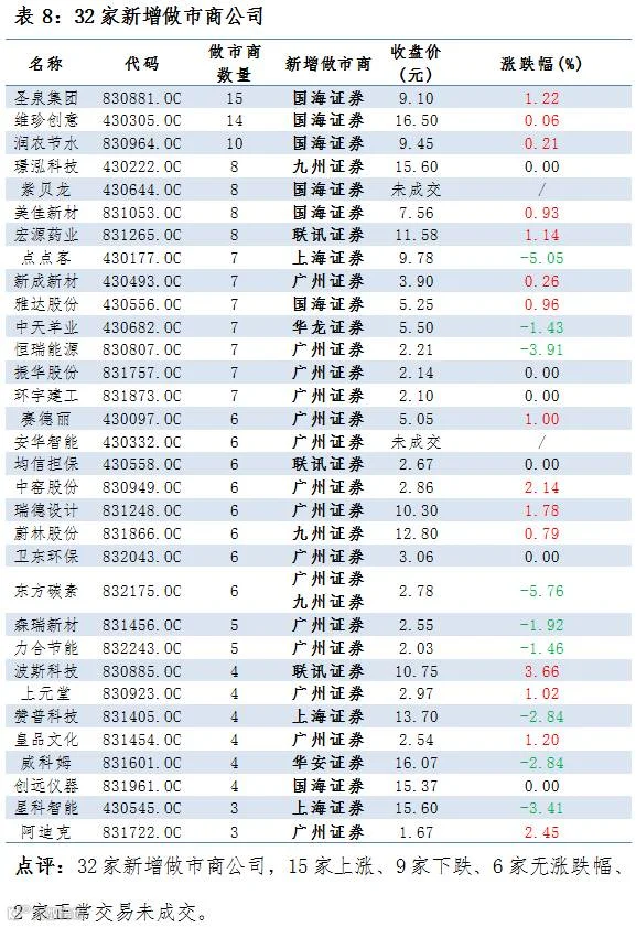 3家协议转做市,32家公司新增做市商