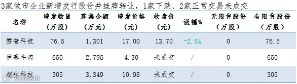 表12:昨日12家公司新增发行股份并挂牌转让: