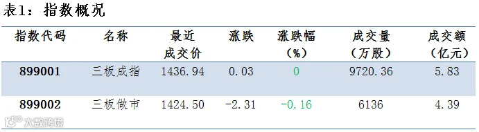 三板成交额微涨 做市指数微跌