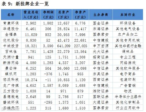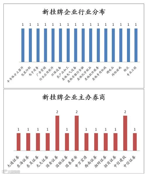 点评:当日新增16家公司,均为协议转让。新挂牌企业中,行业分布较为分散;主办券商方面,国金证券、国泰君安和中信建投占比较大。