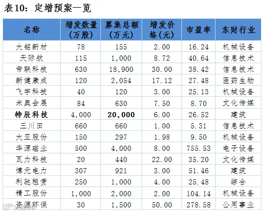 点评:15家公司共募集5.37亿元。定增企业行业分布中机械设备行业占比较大,募集资金最大的为特辰科技,募集资金2亿元。