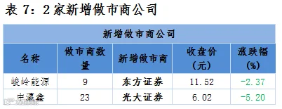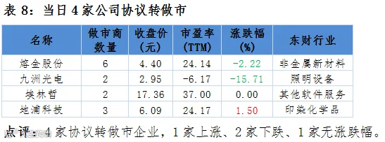 点评:2家新增做市商公司,2家均下跌。