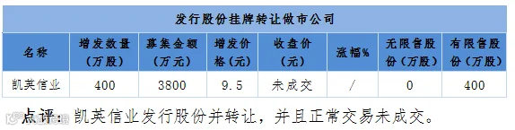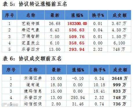 表11、昨日8家公司新增发行股份并挂牌转让:1家做市;7家协议转让,分别是阳光金服、信诺达、天润科技、金刚游戏、博阅科技、鲁班药业、未名信息。