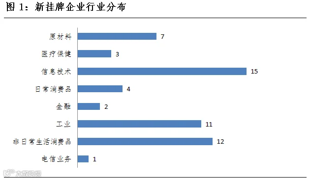 点评12月15日,共有55家新挂牌公司。做市转让2家,分别是上亿传媒与石头造;协议转让43家。挂牌公司行业分布排名前列的分别为信息技术、非日常生活消费品和工业。