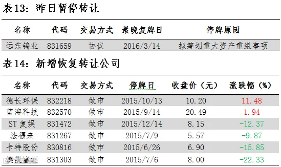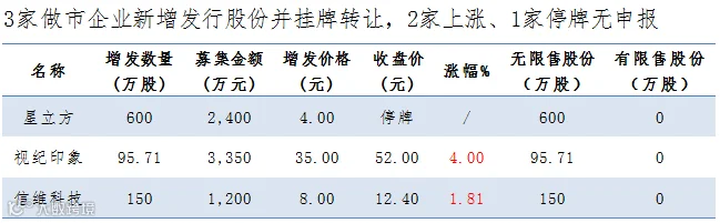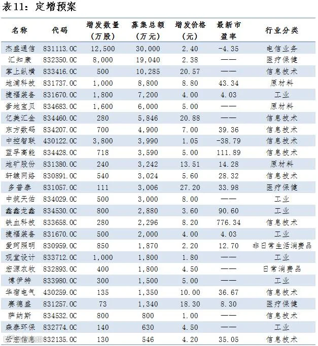表12:昨日10家公司新增发行股份并挂牌转让: