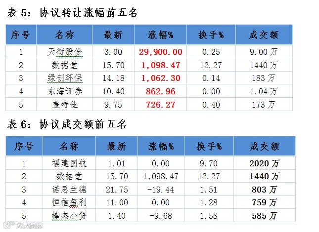 点评:6家发行股份挂牌转让做市公司,5家上涨,仅1家下跌,跌幅0.14%。