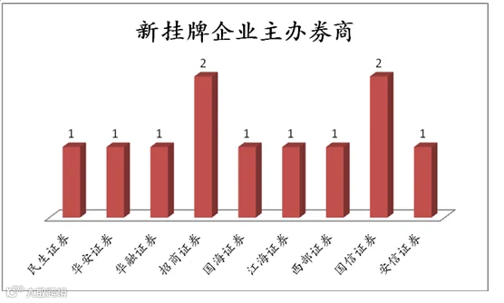 点评:当日新增11家公司,均为协议转让。新挂牌企业行业分布较为分散。主办券商中,招商证券与国信证券占比较大。