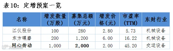 点评:3家公司共募集3480万元。定增企业行业分布中机械设备行业占比较大,募集资金最大的为同心传动,募集资金2000万元。