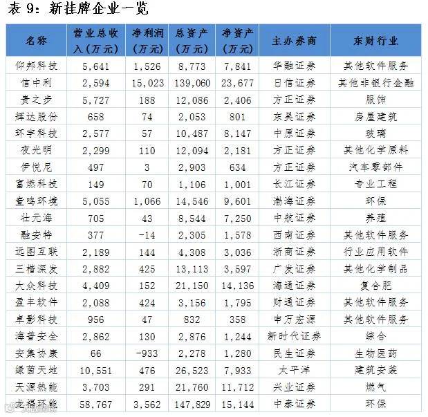 点评:当日新增21家公司,其中信中利为新股首发做市公司。新挂牌企业中,其他软件服务行业占比较大;主办券商方面,方正证券占比较大。