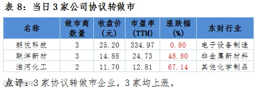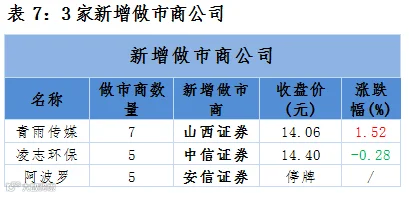 点评:3家新增做市商公司,1家上涨、1家下跌、1家停牌无申报。