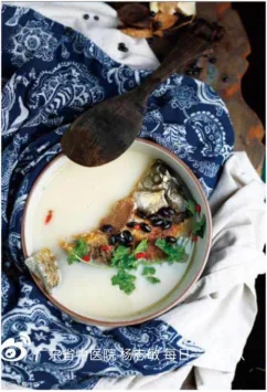 (2)连鱼带汤倒入汤锅内,放入黑豆、陈皮,大火烧开转小火煲1小时,调味即可。