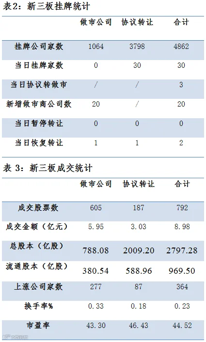 上周五三板共计792只股票成交,总成交额微跌至8.98亿元。其中做市成交5.95亿;协议成交3.03亿元。