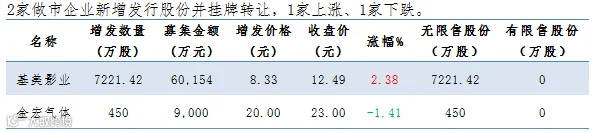 表12:昨日11家公司新增发行股份并挂牌转让: