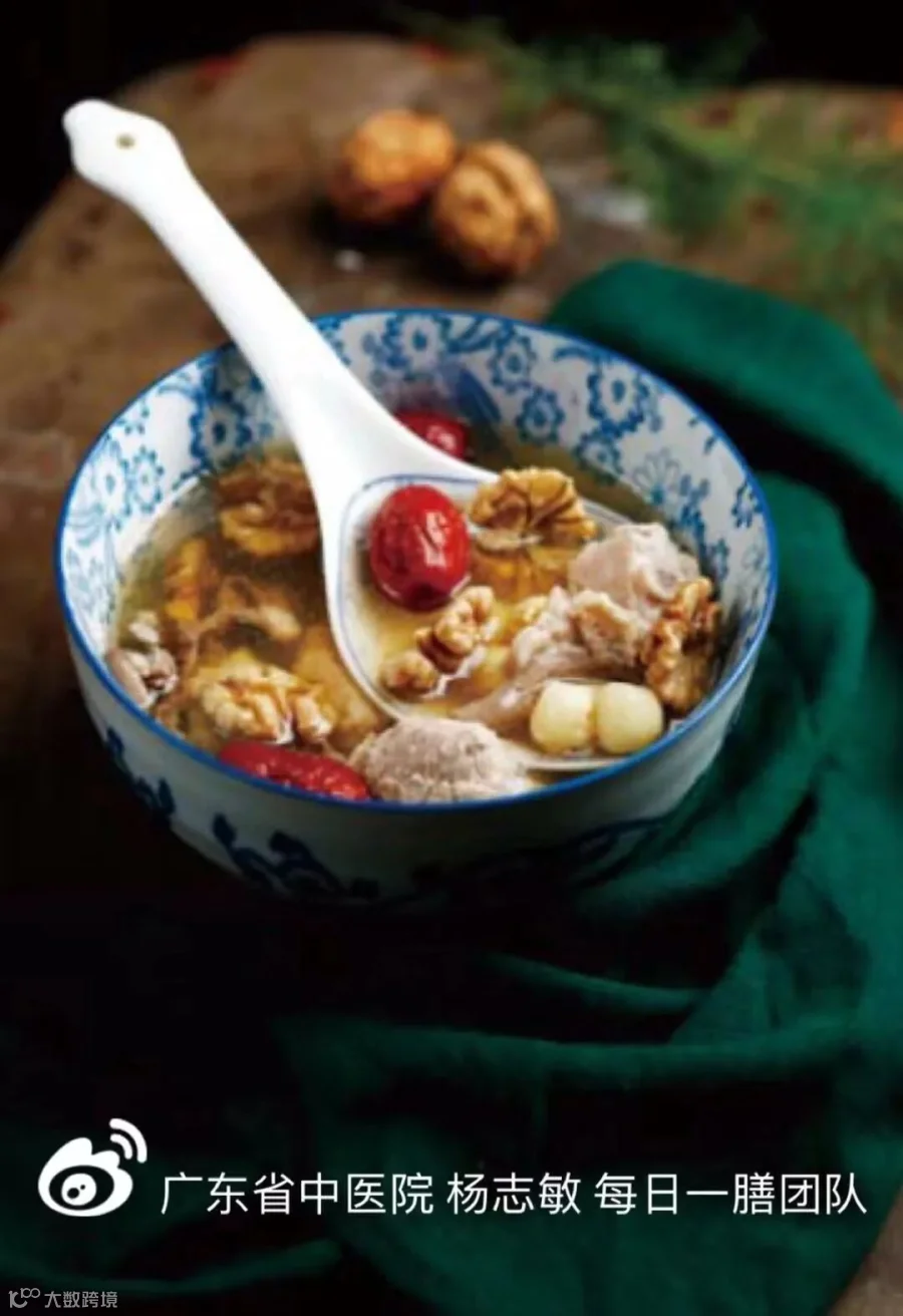 今日推荐 核桃莲子红枣猪心汤 材料: 猪心1个,瘦肉50克,核桃肉、莲子各50克,红枣4个,生姜5片,食盐适量。 做法: (1)莲子去心,红枣去核;猪心、瘦肉洗净切块,焯水备用。 (2)锅内加水煮沸,放入所有食材,大火烧开转小火煲1小时,调味即可。 专家点评: 猪心取“以形补形”之意,能补心。莲子益肾固精、养心安神,善补五脏不足,通利十二经脉。配以核桃补肾、益精、健脑;红枣健脾、补血、安神;本汤特别适合久病、产后,或虚汗、心悸失眠及年老体虚的人群食用。 小贴士: 本汤膳稍温补,如平素易上火者,请少放生姜,加麦冬、石斛各15克。