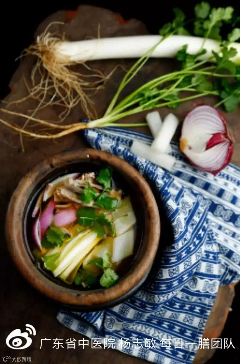 对于免疫力稍逊的儿童及老年人,稍有不慎就会着凉,诱发疾病。洋葱,辛、甘,温,有较强的呼吸道抑菌能力。白萝卜,煮熟后能御风寒,下气和中。两者搭配疏风解表、利肺通肠的大葱,成就一锅辛辣香浓的靓汤。趁热服下,能发汗、通便,有助于改善鼻塞流涕、咽喉不适、疲倦乏力、不欲饮食、大便不通等症状,尤其适合风寒或胃肠型感冒初起的人士食用,也可以用于保健,防感抗感。