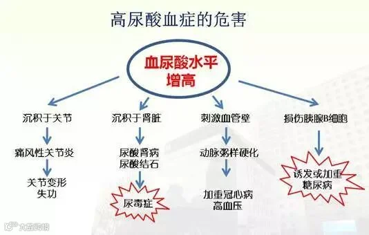 高尿酸血症是代谢综合征、2型糖尿病、高血压、心血管疾病、慢性肾脏病发生发展的独立危险因素,与糖尿病、高脂血症、肥胖密切相关,因此控制高尿酸血症不仅是降低痛风的发生,而是降低其伴随的代谢紊乱等慢性疾病的发生。