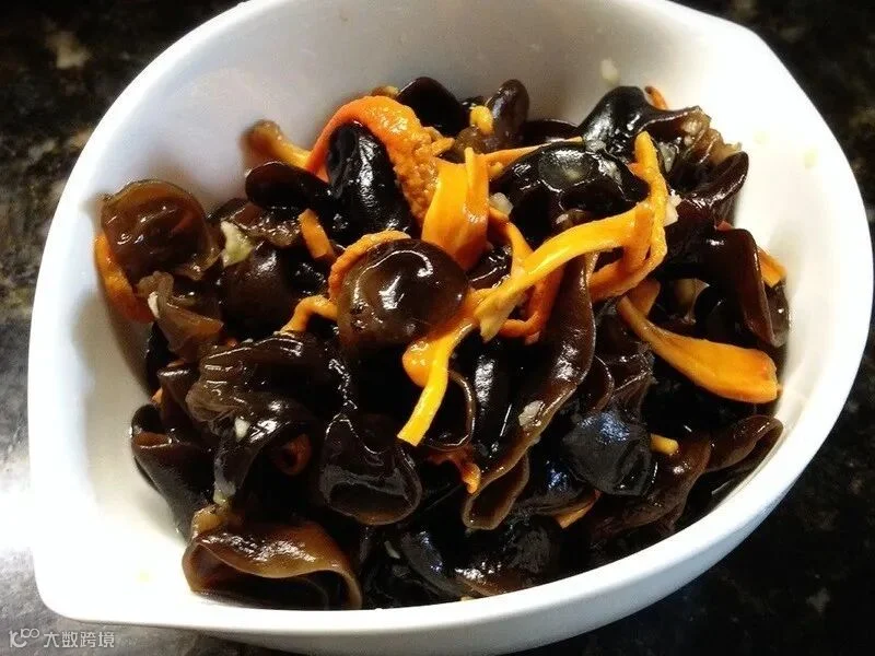 黑木耳 黑木耳发源于中国,已有4000多年的食用历史,因其对生长环境适应能力很强,在我国南北地区均有出产,其中以东北黑木耳品质较佳。 作为大众熟知的菌类食物,黑木耳以其鲜嫩爽脆的口感和丰富的食疗价值,成为老百姓餐桌上常见的食材。被誉为“素中之荤”的黑木耳,含有丰富的营养,不仅富含各种维生素、矿物质,而且微量元素还有不少。 现代药理研究发现,黑木耳中含有的多糖类和腺苷类成分,具有抑制血小板聚集、抑制凝血酶的活性以及降血脂的作用,并能阻止血液中的胆固醇在血管上凝结,缩短血栓长度。 经常食用黑木耳,具有调节血脂,防止血栓形成,防止动脉粥样硬化等保健作用,是预防心脑血管疾病食疗之选。除此以外,黑木耳多糖还能提高机体免疫力,并有一定的抗肿瘤、抗辐射、抗衰老以及稳定血糖的作用,因此,黑木耳近年来已成为中西方食疗界之新宠儿。 今日推荐 堆金积玉 材料: 芹菜150克(最好用广东本地芹菜的细嫩部分),豆腐2砖,黑木耳20克,虫草花10克,红枣3个,芝麻、花生油、芝麻油、生抽适量。 做法: (1)将黑木耳、虫草花温水浸泡半小时,红枣切丝备用。 (2)将芹菜洗净,切成10厘米的小段放在碟子最下方,再把豆腐横放于其上,最后把黑木耳、虫草花及红枣丝铺于豆腐表面,隔水清蒸10分钟。 (3)另一锅把少量花生油煮热,混合适量生抽,再醮在蒸好的芹菜豆腐上,再加点芝麻及芝麻油即可。 专家点评: 芹菜味甘苦,性凉,因其含有降压成分和利尿成分,故具有平肝降压,祛风利湿的功效。豆腐为大豆制品,蛋白质和肉一样是优质蛋白,却没有肉的高胆固醇问题。同时它还富含钙,强健骨骼,是少喝奶的人比较好的补钙途径之一。黑木耳色黑,软化血管,且具有清除肠道积聚的作用。虫草花性平味甘,具有补肾壮阳的功效,其含有的虫草酸和虫草素能增强和调节人体免疫功能。红枣益气养血。五物相配,尽显补益气血之效的同时,又能清理肠胃,降脂降压,可谓男女老少咸宜,特别适用于体虚但血压、血脂偏高和便秘之人。