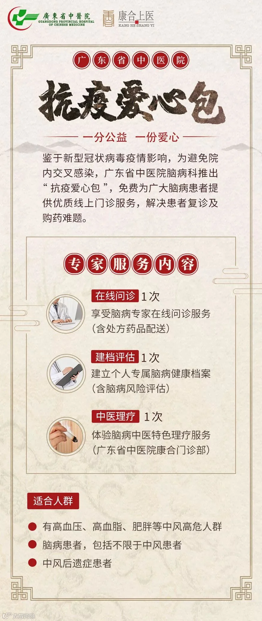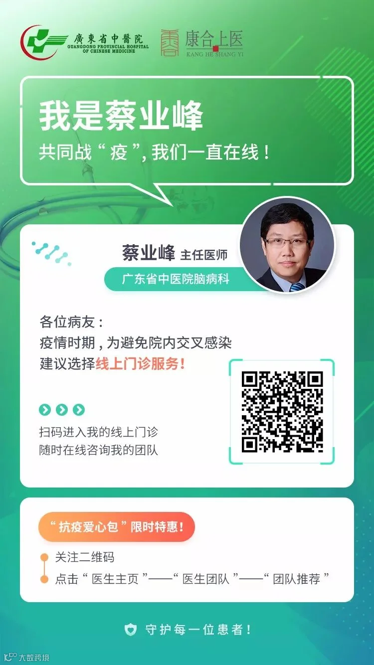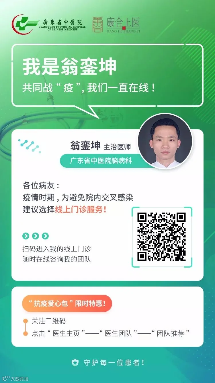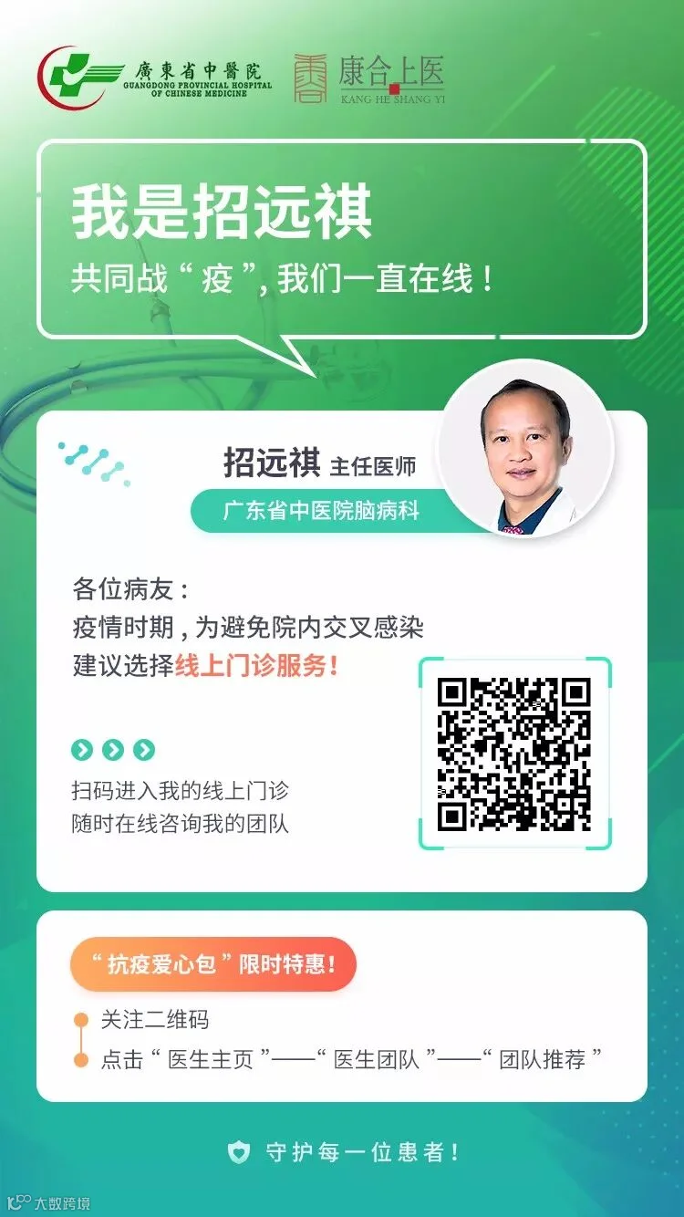 为方便脑病患者复诊,解决购药难题,避免院内交叉感染,广东省中医院脑病科推出“抗疫爱心包”,免费为广大脑病患者提供线上门诊服务。