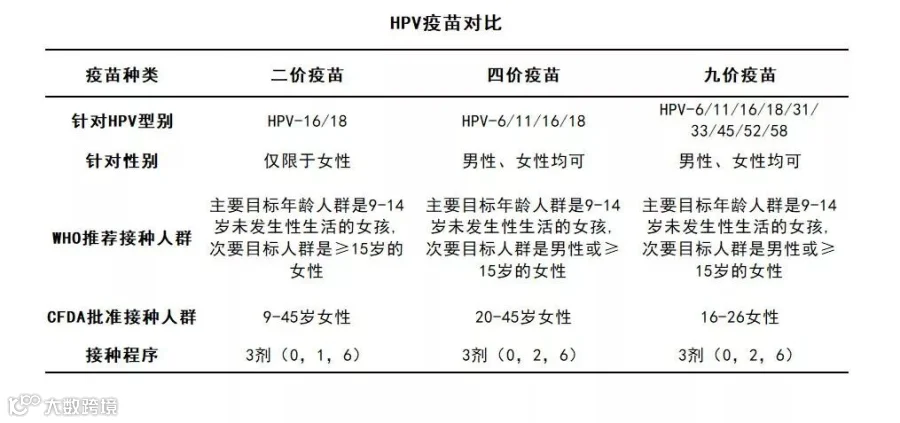 HPV疫苗目前有三种:二价、四价和九价。这里的价,就是针对病毒亚型的种类数,三种最主要的区别就在于其预防的分型不同。