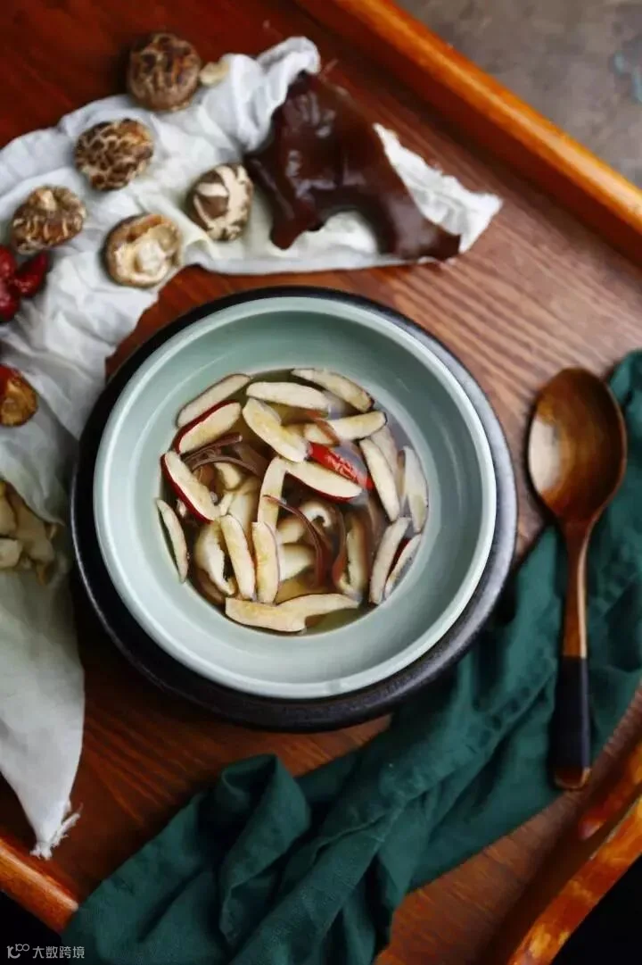 黑豆提前浸泡,香菇、干木耳发泡,红枣切备用;将香菇的根蒂部切下来先与黑豆、玉竹一起放入煮开的沸水中熬汤,熬制约1小时后放入香菇、木耳、红枣丝和姜片,再煮20分钟,撒盐调味即可食用。