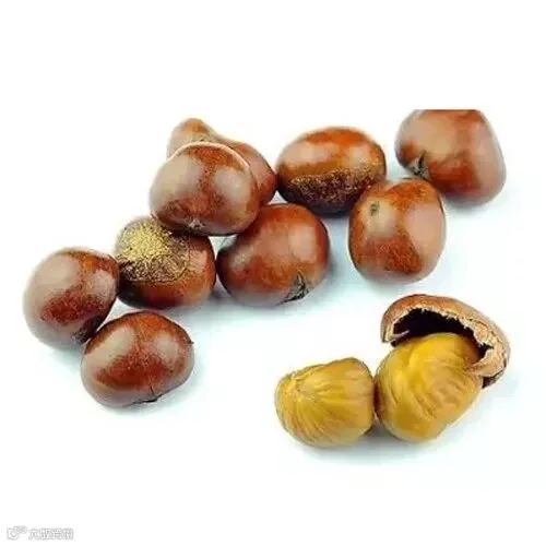 栗子,如板栗,《本草备要》载:“(性)咸温,浓肠胃,补肾气”,是上等果品,具有养胃健脾、补肾壮腰的功效。大蒜,有健脾胃、祛湿浊、消肉食的作用。