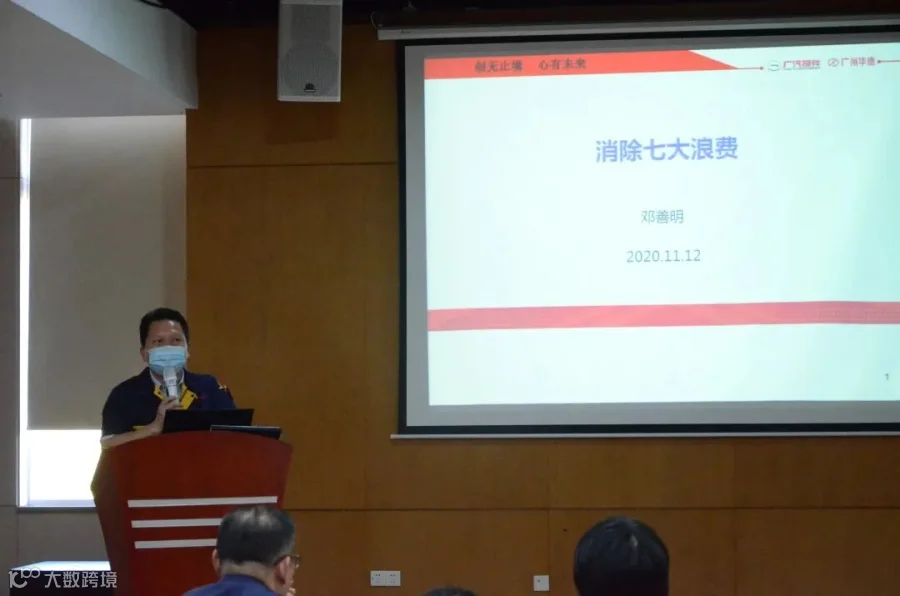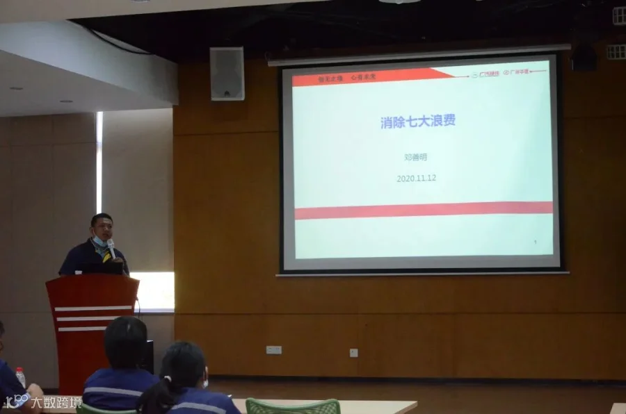 由广丰研修人员邓善明系长主讲,通过对识别七大浪费的定义导入,结合生产线进行七大浪费进行讲解,让参训学员更清晰易懂的识别工作中的浪费行为,通过消除七大浪费提高工作效率。
