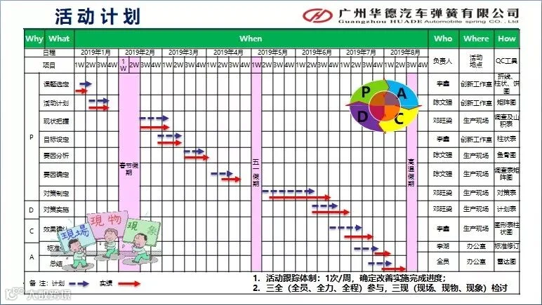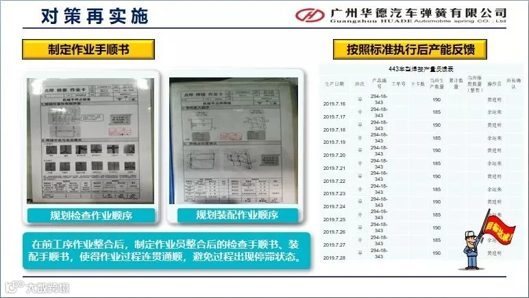 其中,启航小组对削减443A(16款)工程内作业要员课题进行了发表。他们针对443A(16款)配置要员较多,且存在较多等待与动作浪费问题,通过三全(全员、全力、全程)参与,三现(现场、现物、现象)检讨,严格按照PDCA的思路,制定了详细的活动计划,分工合作,逐步分析,拟定对策并验证,经过多轮改善,最终达成既保证产能,又实现每班削减要员1人的目标,为公司每年节省经济成本21.6万元。