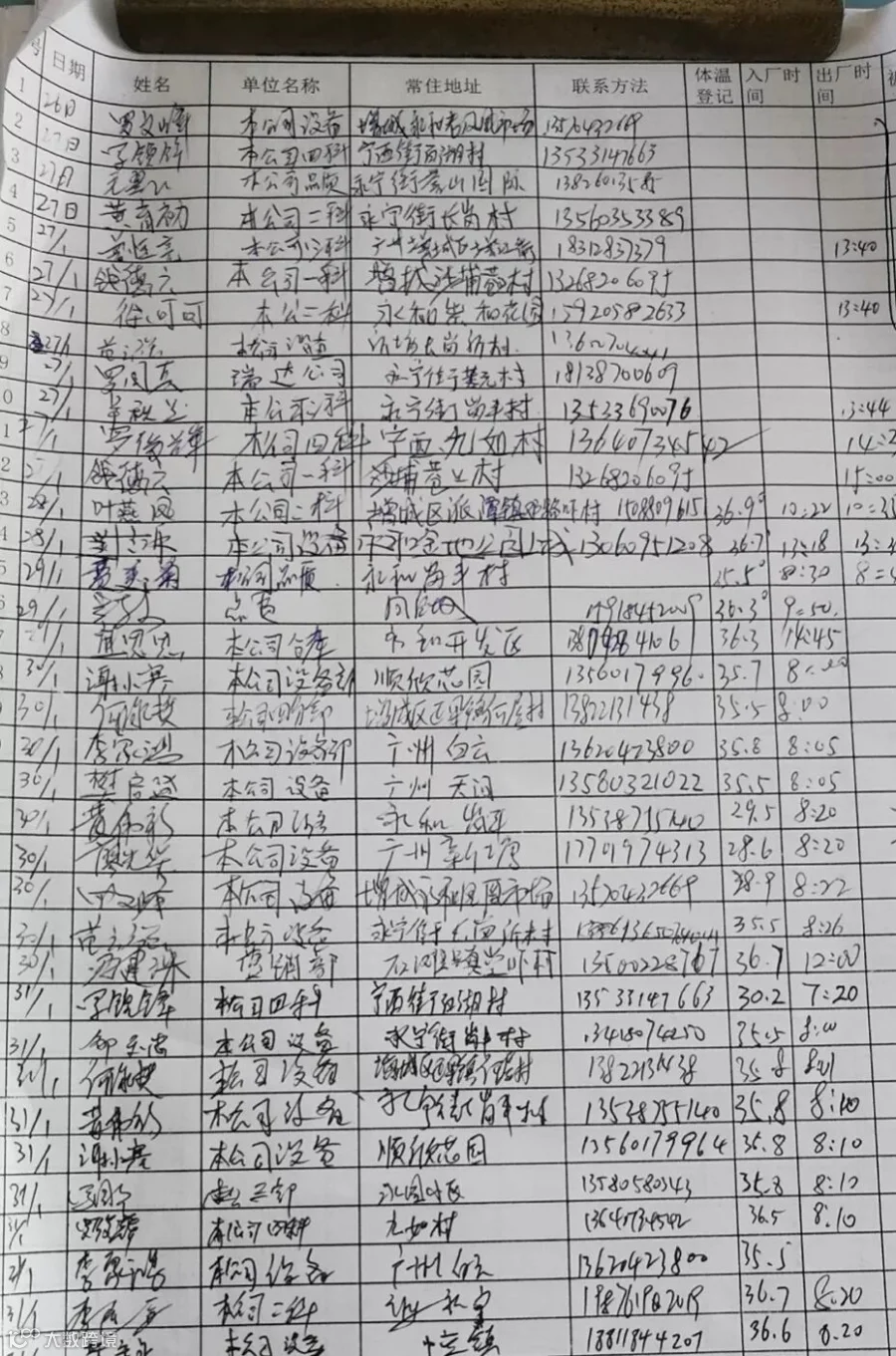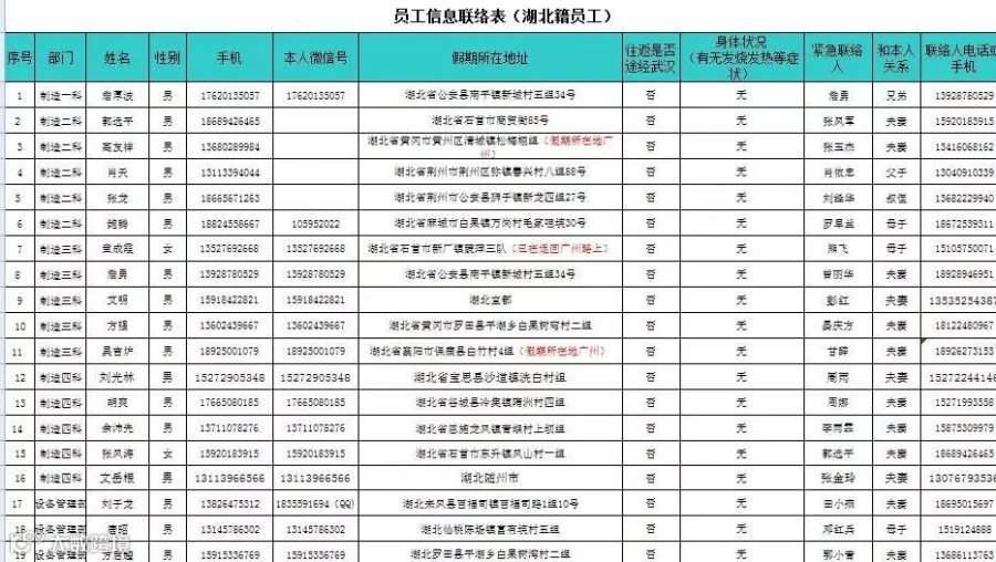 (三)对是否湖北籍员工、放假返鄂员工、武汉接触史和湖北亲朋好友来穗接触史人员进行登记造册,并实时了解身体情况。