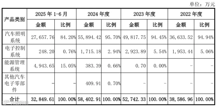 通宝光电收入结构展现出核心业务稳固、新兴动能强劲的良好发展态势。汽车照明系统作为核心支柱,2022-2024 年收入占比始终保持在 94% 以上,2025 年上半年虽略有回落仍达 84.2%,彰显其深厚的技术积累与稳固的市场地位,为公司持续盈利筑牢坚实基本盘。