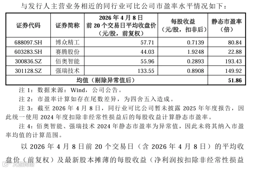 本次发行的市盈率为14.99 倍,对比同行业可比公司2024年静态市盈率均值(剔除极值)为51.86 倍,远低于同行业可比公司2024年平均静态市盈率,具有较高的性价比。