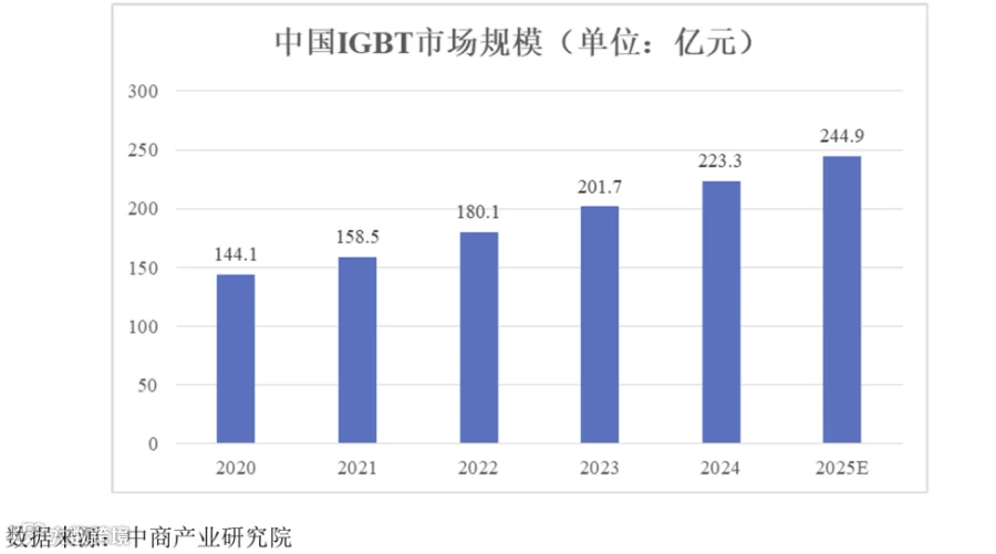 国内市场受益于新能源车与工控需求爆发,2020-2025 年市场规模预计从 144.1 亿元增至 244.9 亿元,年复合增速 11.19%。