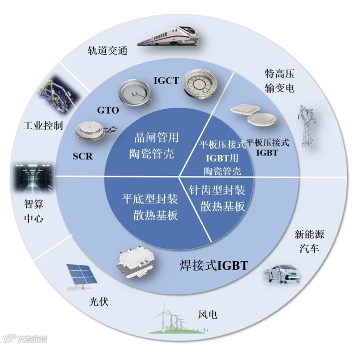 公司主营业务聚焦功率半导体器件核心配套赛道,核心产品为大功率半导体用陶瓷管壳与封装散热基板,主要配套晶闸管、IGBT、IGCT等主流功率半导体器件。