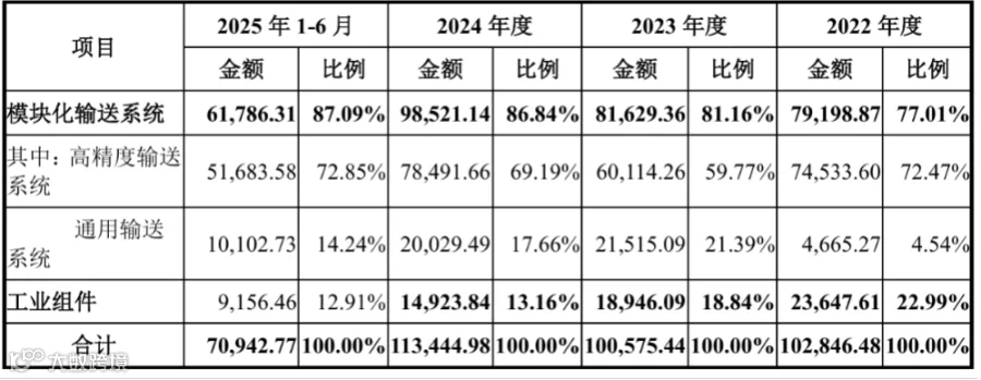 这一结构充分体现公司聚焦核心业务的战略导向,模块化输送系统的持续增长印证了其在细分市场的强劲竞争力。具体数据如下:
