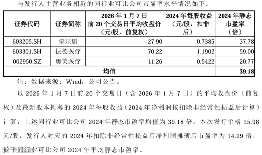 发行人对应的2024年扣除非经常性损益后净利润摊薄后市盈率为14.99倍,对比同行业可比公司2024年静态市盈率均值(剔除极值)为39.18倍,远低于同行业可比公司2024年平均静态市盈率,有很高的性价比。