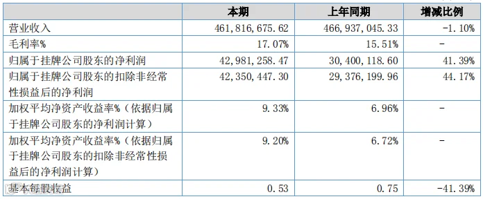 2019年上半年,受益于原材料价格下降,公司扣非净利润4235.04万元,较上年同期大幅增长,公司毛利率同比增长1.56%。同时,公司实现的经营活动现金流量净额为3162.18万元,较上年同期数增加935.80万元;投资活动产生的现金流量净额为-403.79万元,较上年同期增加744.82万元,主要为公司二期工程已投入试生产等。