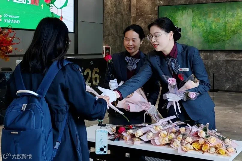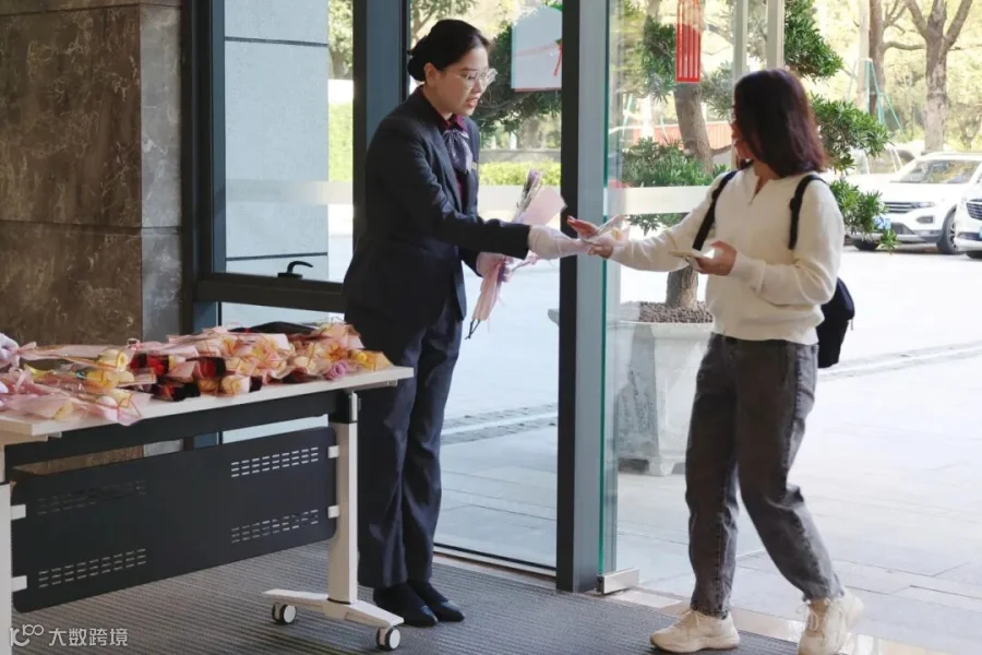 当员工们陆续步入大厦,一束束芬芳鲜花、一句句真诚的“妇女节快乐”接连送上,瞬间为清晨的楼宇增添了浓浓温馨与浪漫气息。