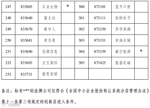根据股转公司2020年4月10日发布的《关于2020年市场分层定期调整相关工作安排的通知》安排,2020年市场分层定期调整分三批实施,分别自4月30日、5月31日和6月30日起向主办券商下发经初步判断符合创新层进入条件和触发创新层定期降层情形的公司名单。