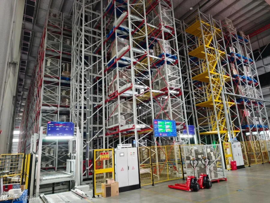 本项目由货架系统、四向车系统、提升机系统、输送系统、仓储管理系统共同构成,包含6台智能四向车、2台托盘式往复提升机、多台地面输送线等。仓库面积约2300平方米,库房高14.3米,6层货架,存放3200多个托盘位,出入库效率达50托/小时。