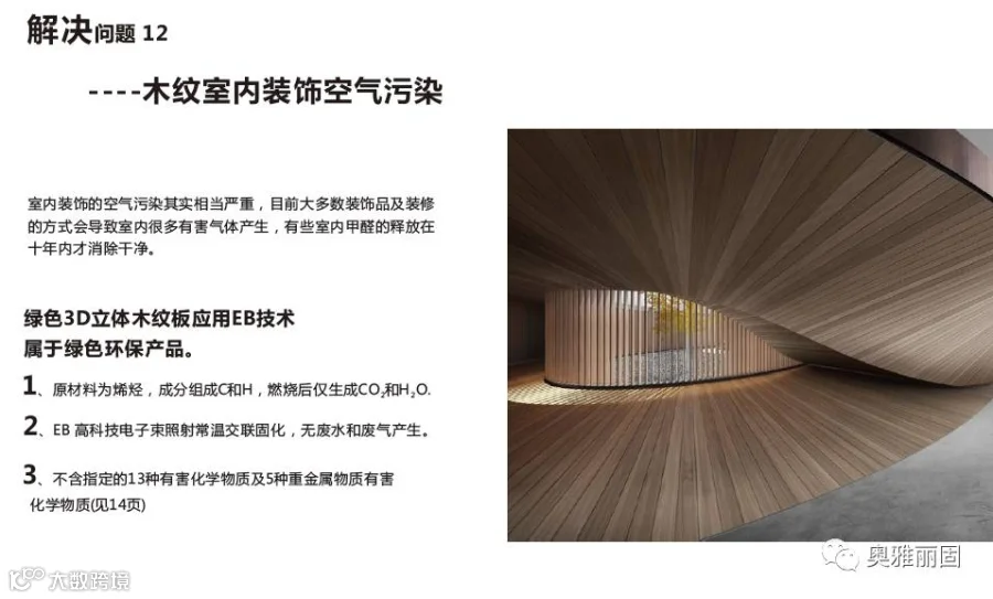 绿色3D立体木纹板应用EB技术属于绿色环保产品。