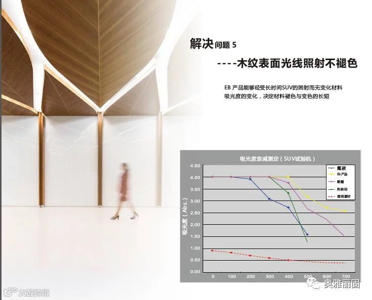 EB 产品能够经受长时间SUV的照射而无变化材料吸光度的变化,决定材料褪色与变色的长短。