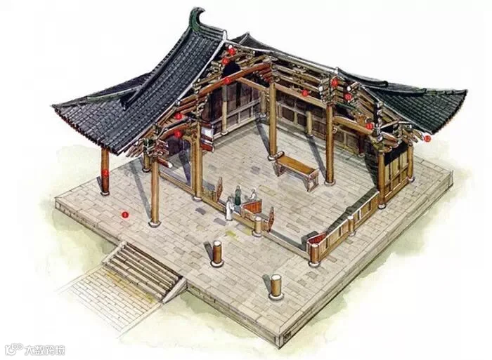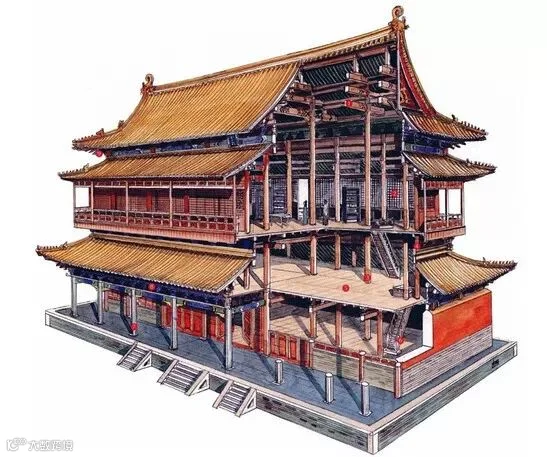 中国木造结构方法,最主要的就在构架(structuralframe)之应用。北方有句通行的谚语,“墙倒房不塌”,正是这结构原则的一种表征。