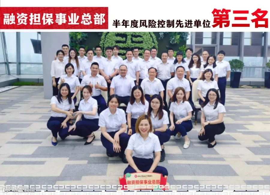 融资担保事业总部获半年度风险控制先进单位第三名。融资担保事业总部坚持将风控摆在首位的工作理念,全员对项目认真审查,客观评判;对上级下达任务迅速执行,妥善完成;和其他部门保持交流,良好协作。风险控制是业务发展的坚强后盾,下半年,融资担保事业总部将严控风险,促进业务经营的平稳发展。