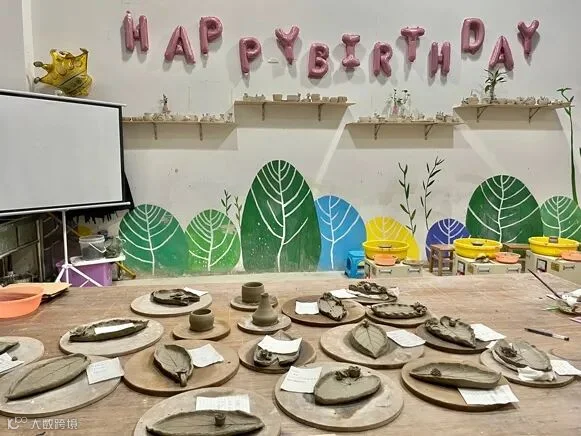 现场各色的气球、独特happy birthday贴、漂亮的生日蛋糕,都给这场生日会增添了温馨的气息。而小伙伴们最期待的环节是陶艺课程的学习和体验。在简短的庆生仪式后,大家在专业老师的讲解示范带领下,开始了陶艺DIY。泥块捏塑,泥板成型,拉坯……经过一番精心设计、修改,一件件生动的作品在小伙伴们手上诞生。