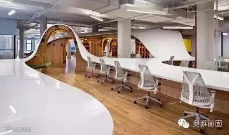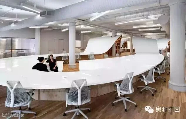 在这张长桌子上工作,员工和员工之间,告别了固有的分割式的办公空间,更像一个团队,一个家族。大家互相挨着坐,彼此之间的交流就更自由、更方便了。