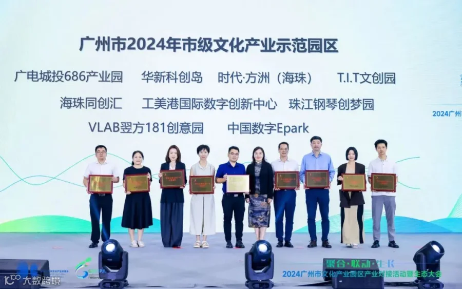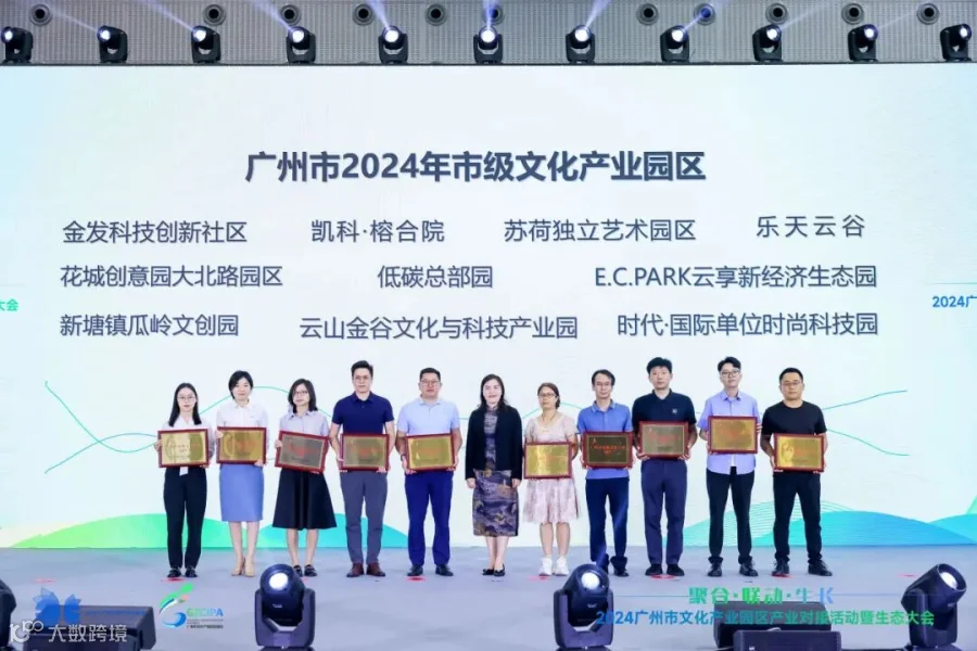 本次大会上,广州市文化广电旅游局公布了2024年新认定的9家广州市市级文化产业(示范)园区、20家广州市市级文化产业园区名单并授牌。
