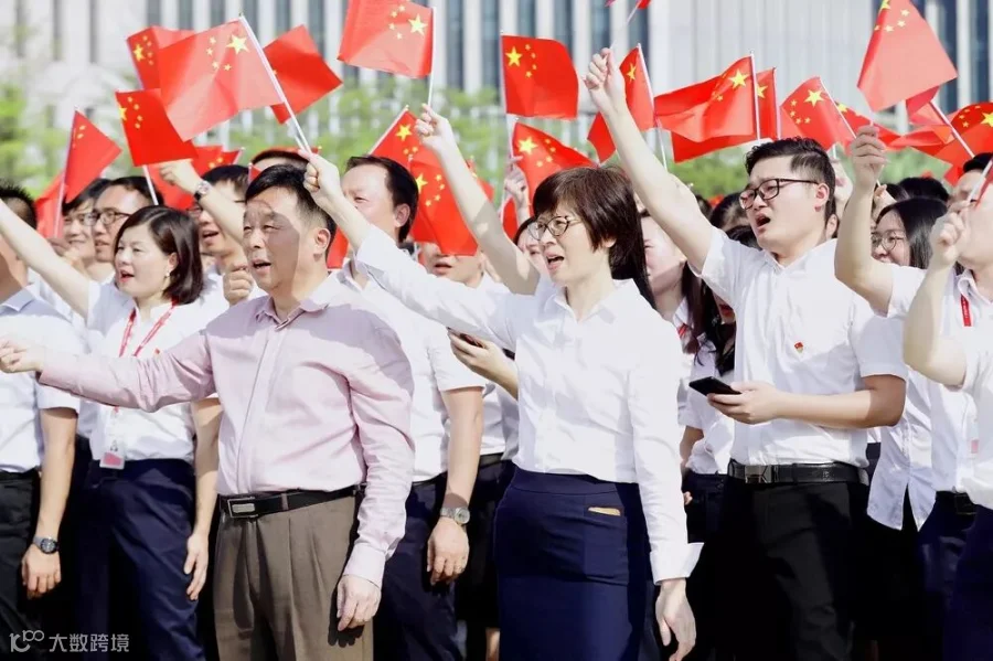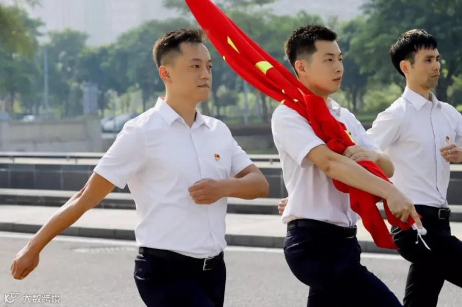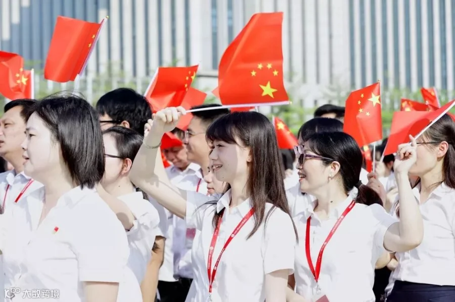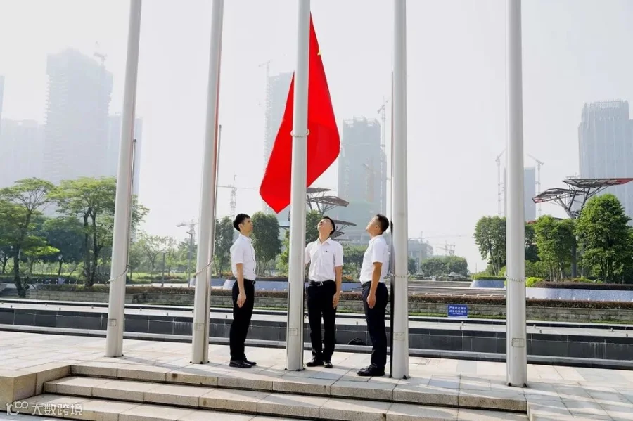 活动上,全体员工身穿司服,党员佩戴党徽,精神饱满地出现在活动现场。8:40分,升国旗仪式正式开始,护旗队迈着整齐划一、铿锵有力的步伐,护卫着国旗走上升旗台。伴随着雄壮的国歌声,鲜艳的五星红旗冉冉升起,全体人员肃立行注目礼,爱国情感在每个人胸中升腾。接着,在悠扬旋律伴奏下,大家深情唱出歌曲《我和我的祖国》、《歌唱祖国》。与此同时,全体人员高高举起双手,从头顶上方进行国旗传递。