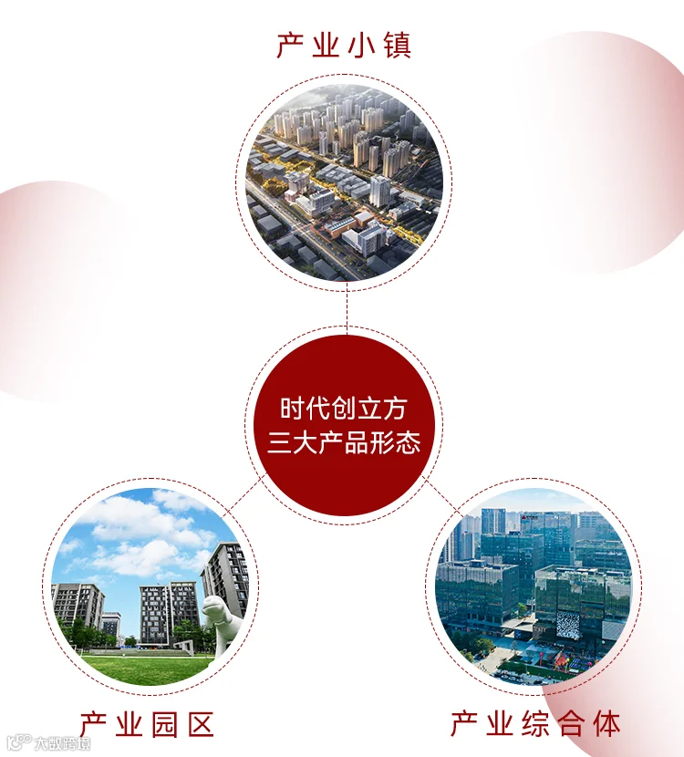 时代创立方围绕产业集群的发展需求不断升级产业载体,已形成产业小镇、产业综合体及产业园区三大产品形态,涵盖总部办公、研发办公、轻生产等立体功能业态,满足不同发展阶段企业的需求,并通过引入国内外顶尖设计资源,彰显艺术人文和低碳生态的产品气质,给予工作生活其中的人们更美好的体验。