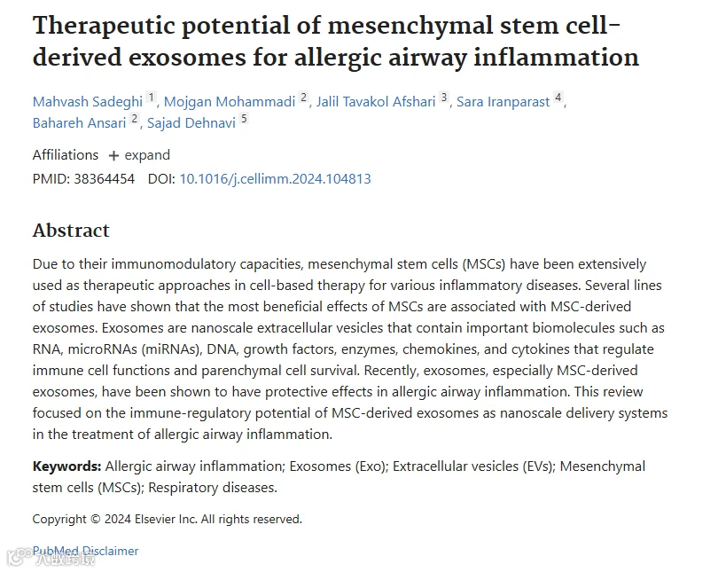 1.Therapeutic potential of mesenchymal stem cell-derived exosomes for allergic airway inflammation