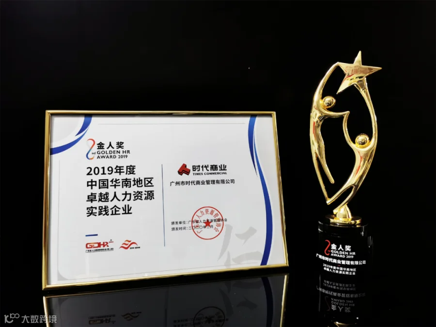 2020年3月26日,由广东省人力资源管理协会举办的2019年度中国华南地区人力资源创先争优(金人奖)公益评选结果隆重发布,时代商业荣获“2019年度中国华南地区卓越人力资源实践企业”奖项,人力资源实践成果获得肯定。