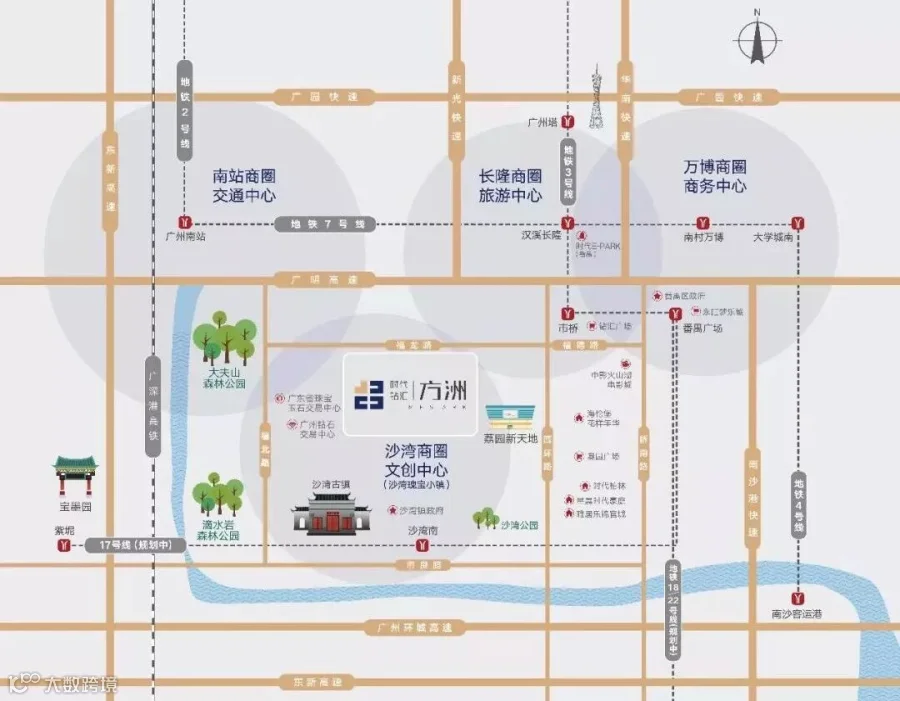 时代钻汇方洲周边公共交通便利,多条交通干线交汇,40分钟可直达广州市中心。而通过园区楼巴或公交,10分钟内可联通市桥地铁站,便捷办公,畅通无阻。